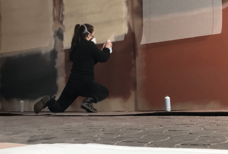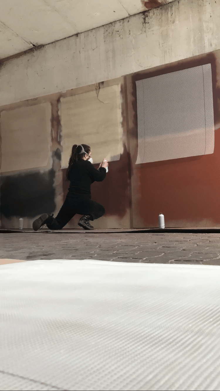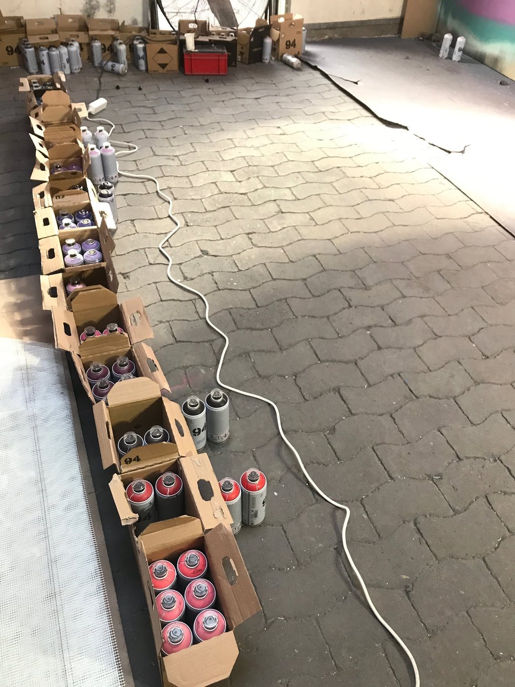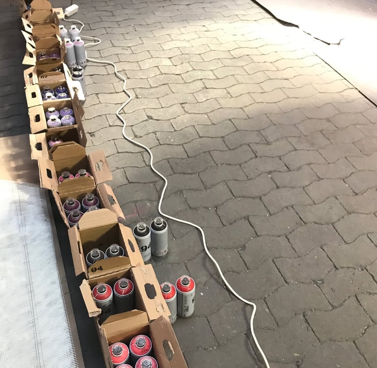 I had the privilege of supporting Thomas throughout the entire project, contributing to every phase from initial planning and visualization on the computer to the final execution. My role involved meticulous tasks such as cutting fabric panels, painting all 120 fabric sections, and, ultimately, hands-on work on site, including painting walls and countless hours standing on a ladder.