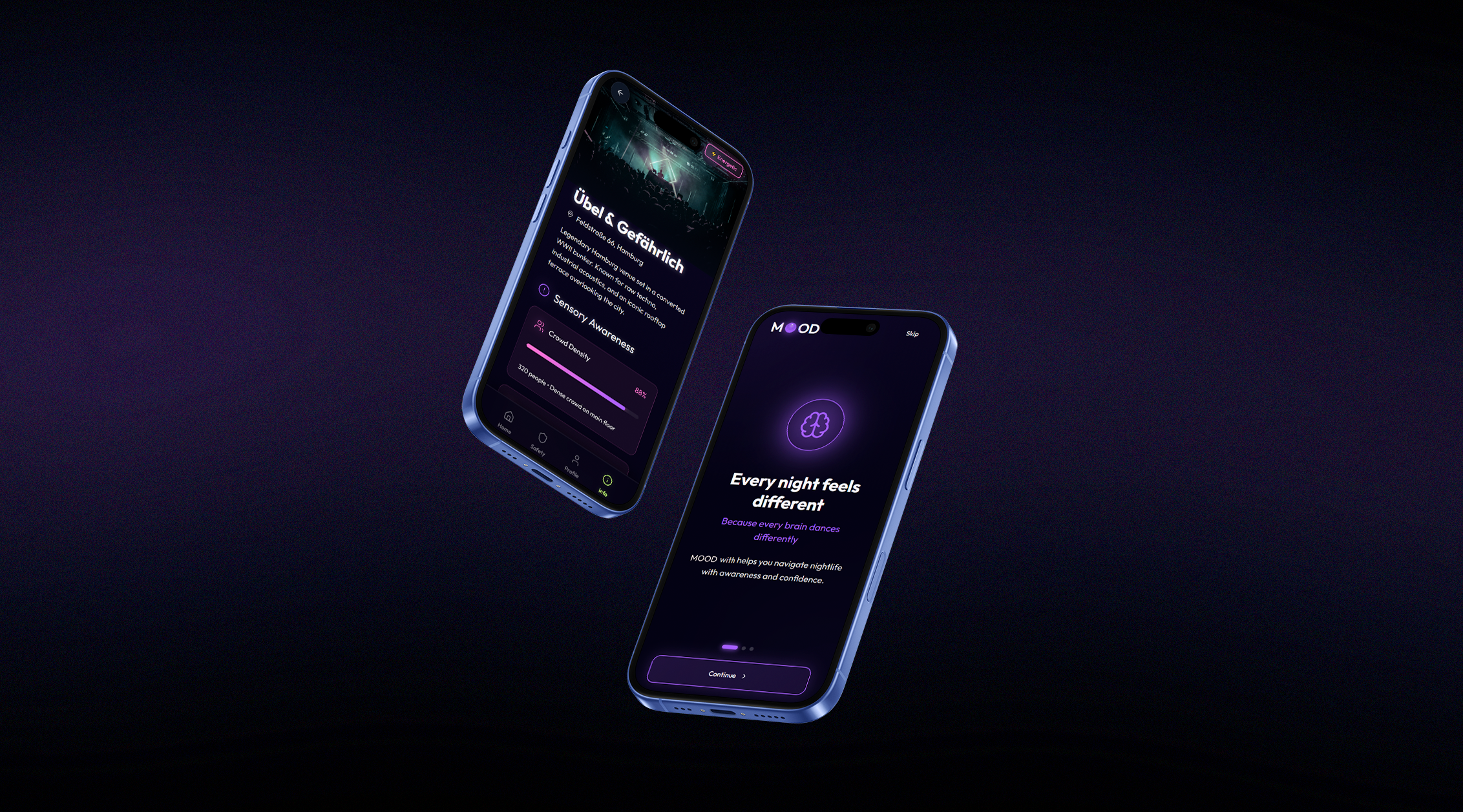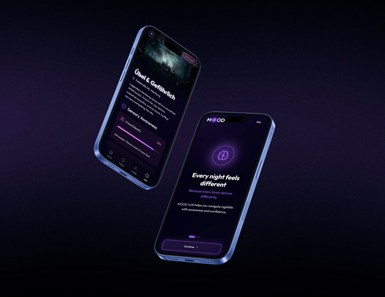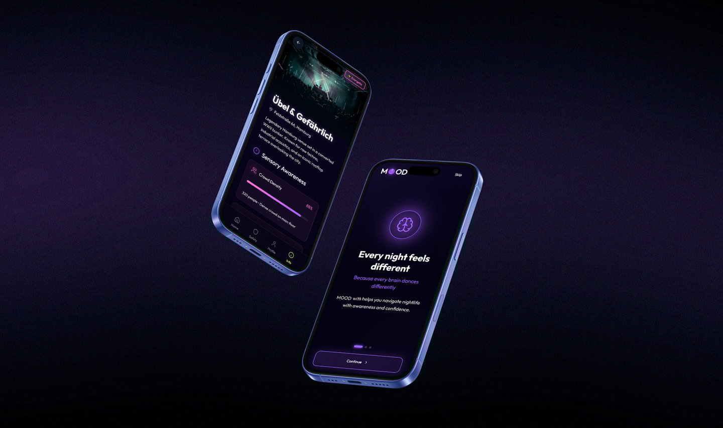 Mood-based app exploring emotion, awareness, and nightlife aesthetics | 2025