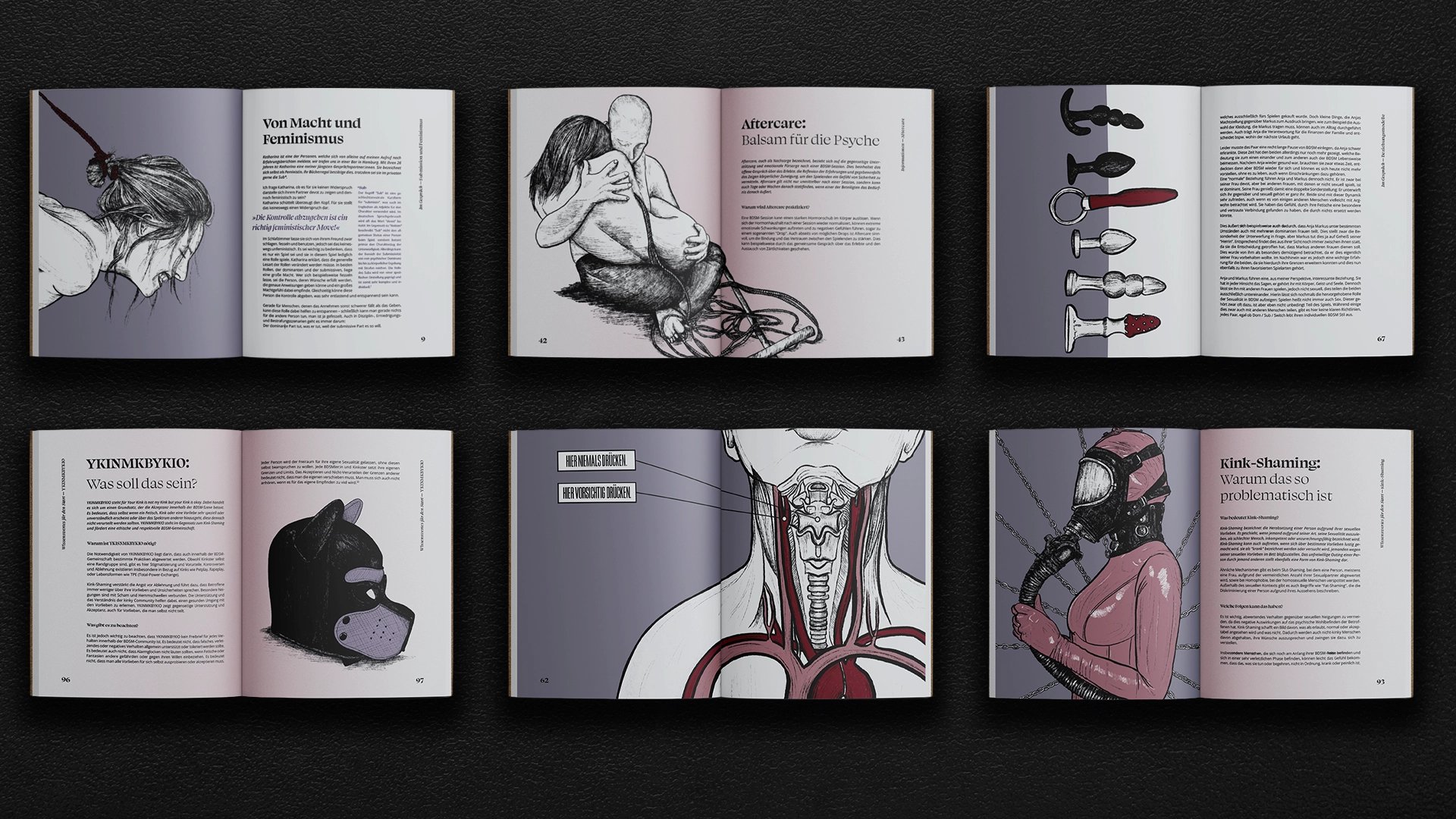 The Book was not only a balancing act in content but also in design. It navigates between hard and soft, clichés and relevance, and explicitness and objectivity. That's why I chose pastel colors to break stereotypes, created tasteful illustrations for realistic insights, and opted for a neutral cover to distance it from the look of the typical erotic books. The result is an artistic non-fiction book that aims to do both: educate and entertain.